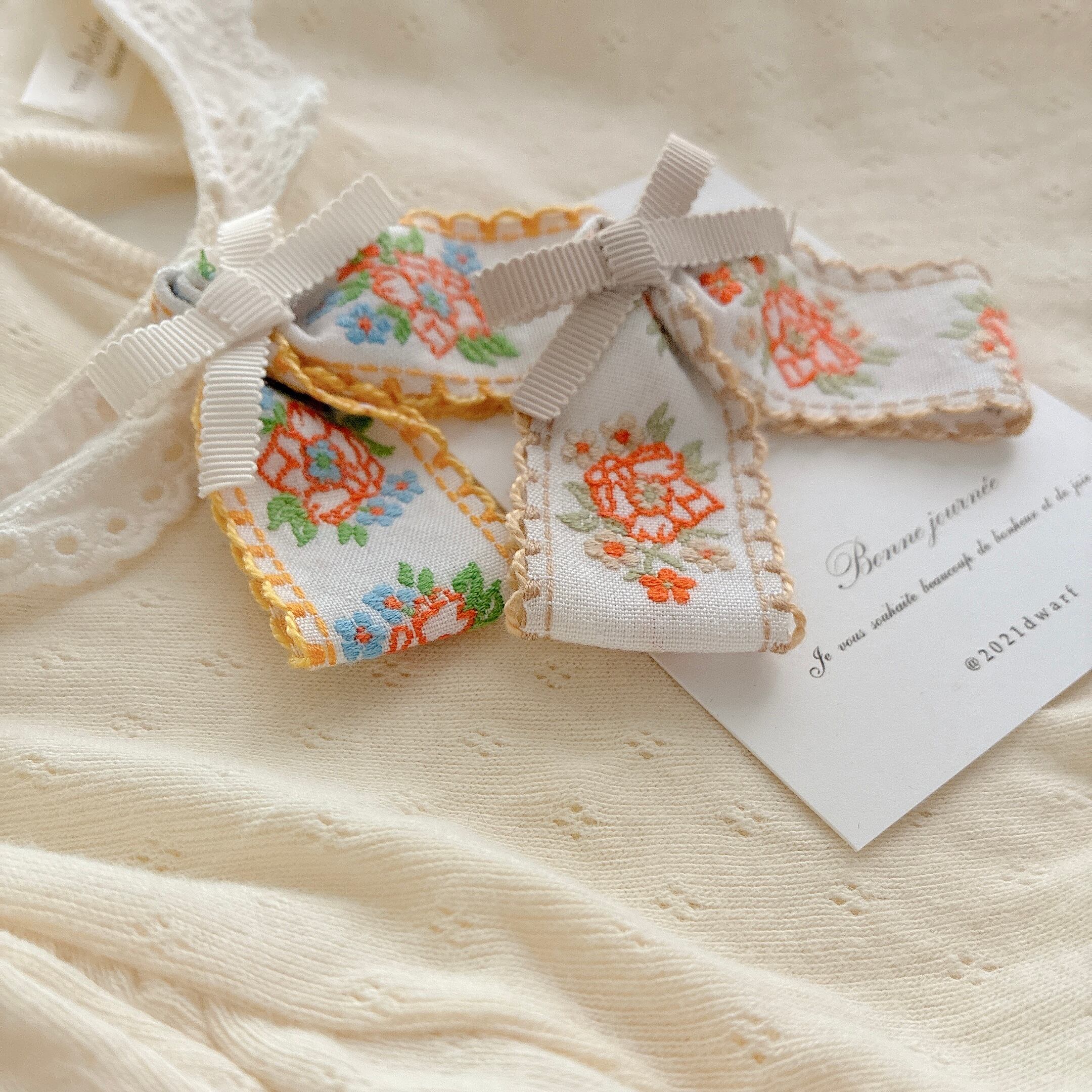 リボンのヘアクリップです。刺繍を生かして少し変わったリボンの形に仕上げています♪