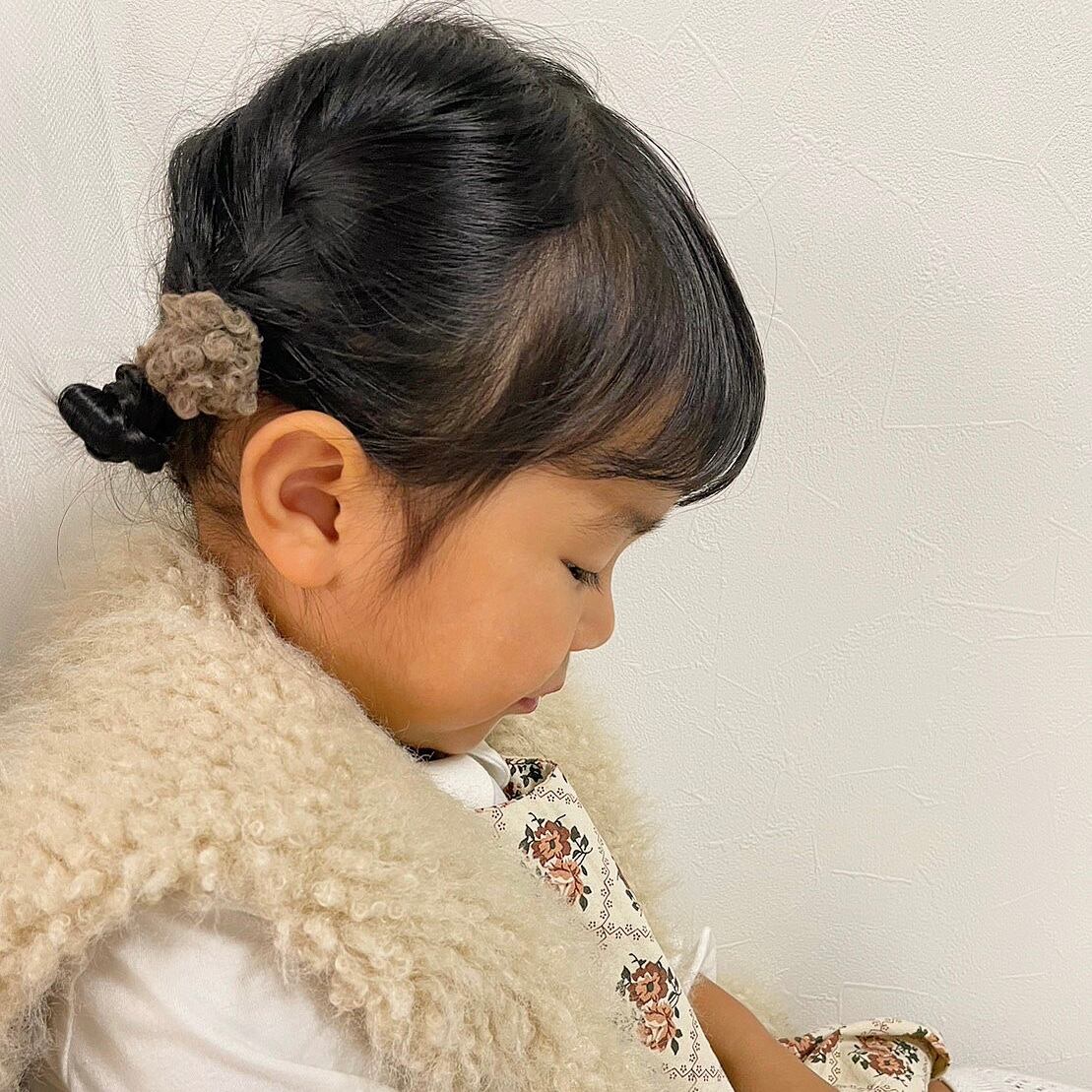 羊さんのような可愛いミニサイズのポンポンヘアゴムです。こちらは2個セット商品となります。