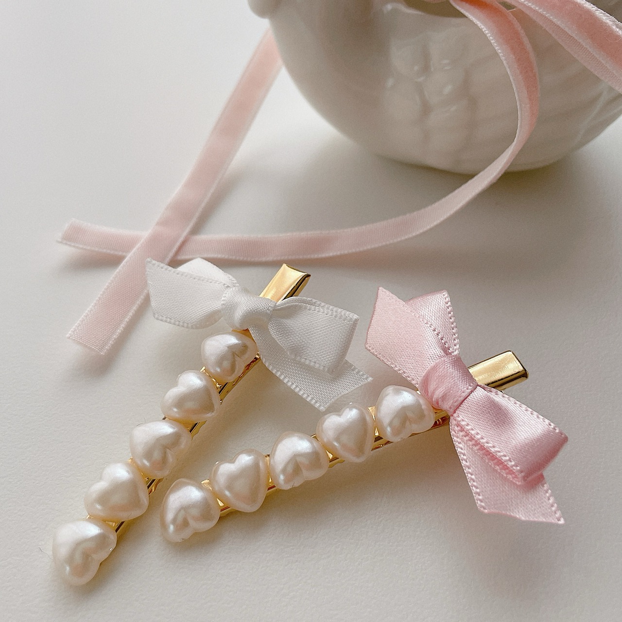 ハートパールにミニサイズのリボンを